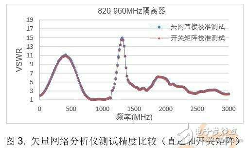 经过校准后,开关矩阵和测试电缆成为了矢量网络分析仪的一部分,金年汇官方版网站登录入口-金年汇(中国)针对铁氧体隔离器作为被测件进行了比较测试,结果如图3所示。